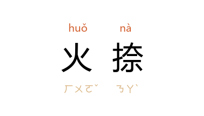 引清 屈大均 《广东新语·石语·端石》:“﹝端石﹞凡十餘种,其火捺以紫气奔而迴礴,又如血晕散开,有若云雾之气,或小而圆轮若金钱者。”清 钮琇 《觚賸·石言》:“峡石矿凡十一,北岸坑曰‘阿婆’,曰‘白婆坟’,其石质黯黝不鲜佳者,亦有火捺纹、蕉叶白。”