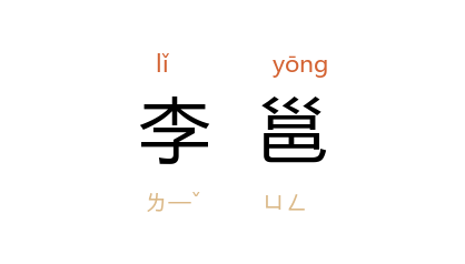 ⒈ 人名。(西元678~747)字泰和,扬州江都(今江苏省)人,为李善之子。唐代书法家。玄宗时任北海太守,世称为「李北海」。为人刚正不屈,后为李林甫所害。精书法,初学王羲之,复自成一格。擅以行楷写碑,笔力雄浑,风骨劲拔。有《李北海集》,碑刻有〈麓山寺碑〉、〈李思训碑〉等。