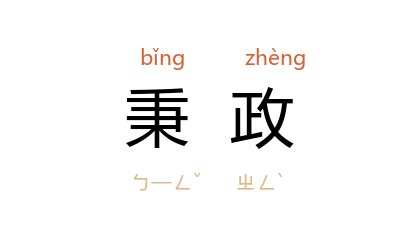 引《史记·太史公自序》:“春秋 之后,陪臣秉政。”《汉书·外戚传下·定陶丁姬》:“哀帝 崩, 王莽 秉政。”《新唐书·张延赏传》:“帝还,詔入秉政。”《痛史》第七回:“误用匪人秉政,所以汲引之人都是此狗彘之辈。”鲁迅 《坟·从胡须说到牙齿》:“但也因秉政者的变换,仪式上,尤其是行礼之状有些不同。”