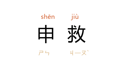 引晋 袁宏 《后汉纪·桓帝纪》:“李膺 等被赦,由 武 申救之也。”《新唐书·源乾曜传》:“姜晈 为 嘉贞 所排,虽得罪,讫不申救,君子讥焉。”清 侯方域 《朋党论上》:“其有误遭网罗者,君子又必申救之。”