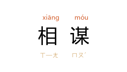 引《韩诗外传》卷四:“有无相贷,饮食相召,嫁娶相谋,渔猎分得,仁恩施行,是以其民和亲而相好。”宋 叶适 《朝请大夫提举江州太平兴国宫陈公墓志铭》:“踞(吴踞 )、 安世(项安世 )不相谋也,检校若合符,人不素定乎?”郭沫若 《今昔集·论古代文学》:“所以到了 秦 汉 时代,尽管南北分裂将近一千年,各不相谋的发展着,而那个时代的 中国 却是做到了‘车同轨,书同文,行同伦’的地步。”