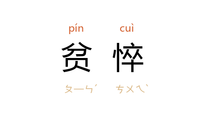 引《艺文类聚》卷三五引 汉 应璩 《与尚书诸郎书》:“岂久沉滞於下职,契阔於贫悴哉。”北齐 颜之推 《还冤记》:“亡后,家便贫顇,一儿早死,餘有一孙,穷寒路次。”宋 陆游 《排闷》诗:“贫悴只如行卷日,衰迟忽过挂冠年。”