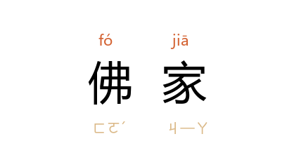 ⒉ 佛菩萨的境地。如净土、寺院,都可称为「佛家」。