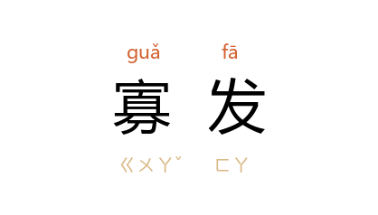 引《易·说卦》:“其於人也为寡髮,为广顙。”孔颖达 疏:“寡,少也。”宋 周紫芝 《竹坡诗话》:“方回 寡髮, 功父 指其髻谓曰:‘此真 贺梅子 也。’”明 沉德符 《野获编补遗·公主·尚主见斥》:“主既下降,因 谢 寡髮,为时所嘲弄,意已不懌。”