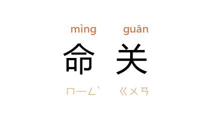 ⒈ 中医名词。中医分食指为三节,从连掌部一节起依次为风关、气关、命关。凡小儿指上脉纹透达第三节,表示病情严重,可能危及生命,故名。