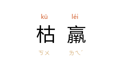 引宋 赵令畤 《侯鲭录》卷一:“﹝ 东坡 ﹞再召入院作承旨,仍益之云:‘枯羸之质,匪伊垂之带有餘;歛退之心,非敢后也马不进。’”清 黄宗羲 《刘太夫人传》:“身处膏粱,而葵糈瓠菹,枯羸仅足。”