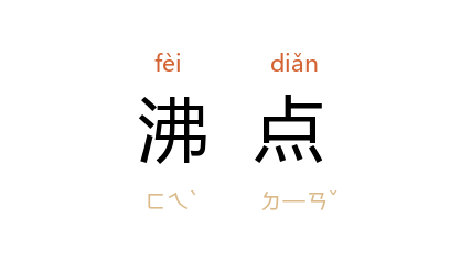 ⒈  液体开始沸腾时的温度。借指情绪高涨的顶点。