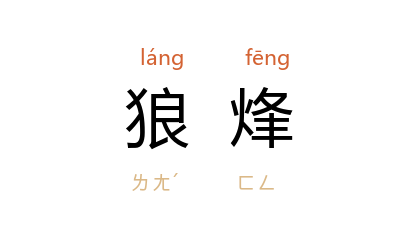 引宋 苏辙 《落叶满长安分题》诗:“衣信催烦杵,狼烽报极边。”宋 陆游 《谢池春》词之一:“壮岁从戎,曾是气吞残虏。阵云高狼烽夜举。”清 贝青乔 《哀甬东》诗:“狼烽一夕红过江,血染连村成战垒。”