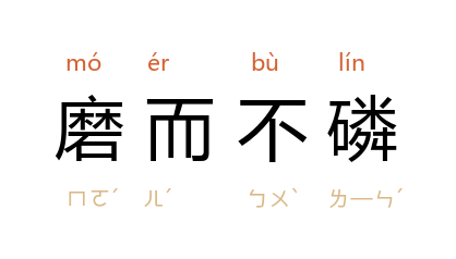 引《论语·阳货》:「子曰:『然,有是言也,不曰坚乎?磨而不磷。不曰白乎?涅而不缁。』」唐·李德裕〈袁盎以周勃为功臣论〉:「然磨而不磷,涅而不缁,未尝不心存社稷。」