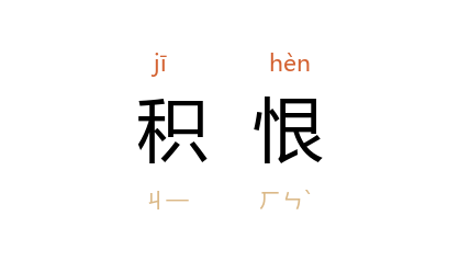 引唐 王勃 《秋日游莲池序》:“秋者愁也,酌浊酒以荡幽襟,志之所之,用清文而销积恨。”清 黄六鸿 《福惠全书·莅任·谨操守》:“是己之严刑酷法而聚之,彼则倾囊倒篋而吞之矣,其民之深仇积恨不归之己而归之谁耶!”邹韬奋 《经历》十五:“各人对他虽积恨在心,但都敢怒而不敢言。”