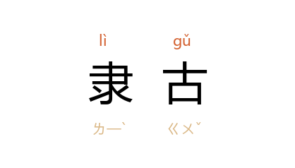 ⒈ 谓以隶书考校写定古篆文。《书序》:“至鲁共王,好治宫室,坏孔子旧宅,以广其居,于壁中得先人所藏古文虞、夏、商、周之书及《传》、《论语》、《孝经》,皆科斗文字……科斗书废已久,时人无能知者,以所闻伏生之书,考论文义,定其可知者为隶古定,更以竹简写之。”陆德明释文:“谓用隶书写古文。”孔颖达疏:“言隶古者,正谓就古文体而从隶定之,存古为可慕,以隶为可识,故曰隶古,以虽隶而犹古。”宋赵彦卫《云麓漫钞》卷十:“自安国变隶古,后人不复见古文,时于《史记》见之。”一说,指隶书与科斗古文。