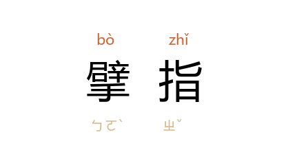 引《尔雅·释鱼》“蝮虺,博三寸,首大如擘” 晋 郭璞 注:“身广三寸,头大如人擘指。”清 厉荃 《事物异名录·形貌·手》:“擘指,大指也,即 孟子 所谓‘巨擘’是也。”