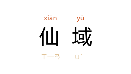 引《云笈七籤》卷六:“修道之人,初登仙域,智用通泰,渐昇上境,终契真淳。”马学良 《倮文作斋经译注·作斋礼俗述要》:“超度阴鬼化为仙灵,与始祖同登仙域。”