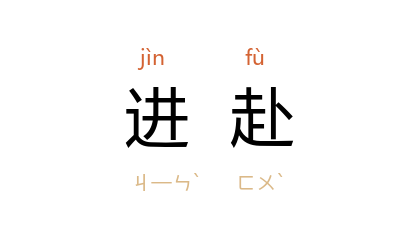 引《后汉书·冯绲传》:“进赴之宜,权时之策,将军一之,出郊之事,不復内御。”《晋书·虞潭传》:“会 王含、沉充 等攻逼京都, 潭 遂於本县招合宗人,及郡中大姓,共起义军……乃进赴国难,至 上虞。”