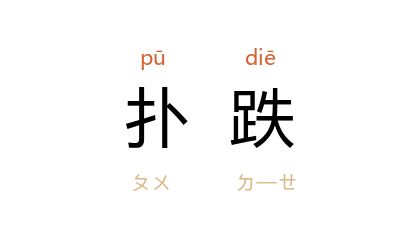 例如:「那人行走不小心,踢到石阶,扑跌在地上。」
