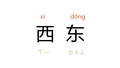 ⒈ 西边和东边。宋·杨万里〈晚望〉诗:「落日偏明松表里,好山分占水西东。」也作「东西」。
