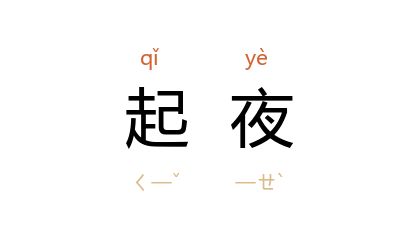 引《儿女英雄传》第十六回:“你老要起夜,有我这马桶呢?”《三侠五义》第五回:“﹝ 张三 ﹞説道:‘不是我爱小便宜。我上了年纪,夜来时常爱起夜。你把那小盆给我一个。’”黄济人 《将军决战岂止在战场》第二二章:“连你这个从不起夜的人,我也晓得出了两次门。”
