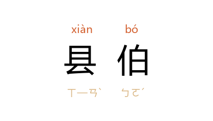 ⒈ 爵名。 晋 代侯、伯、子、男皆封以县;历代因之。 南朝 陈 始加开国二字,称为开国县伯、开国县子。 元 有县子、县男、无县伯。 明 废。 《隋书·百官志上》:“陈 承 梁 ……其封爵亦为九等之差。郡王第一品。秩万石。嗣王、蕃王、开国郡县公,第二品。开国郡县侯,第三品。开国县伯,第四品。并视中二千石。开国子,第五品。开国男,第六品。并视二千石。汤沐食侯,第七品。乡、亭侯,第八品。并视千石。