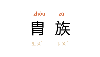 引北魏 郦道元 《水经注·比水》:“又有石庙数间,依于墓侧,栋宇崩毁,惟石壁而已,亦不知谁之胄族矣。”南朝 梁 慧皎 《高僧传·义解四·宝亮》:“释寳亮 本姓 徐 氏,其先 东莞 胄族。”