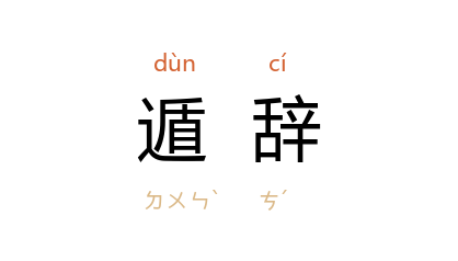 ⒈ 亦作“遁词”。亦作“遯辞”。亦作“遯词”。指理屈辞穷或不愿吐露真意时,用来支吾搪塞的话。