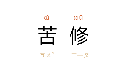 引《老残游记续集遗稿》第六回:“与其苦修几十年,将来死了不过来生变个富贵女人,这也就大不合算了。”《痛史》第十三回:“喜得这座古庙没有閒人,只有一个老和尚在那里苦修。”