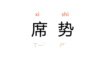 引唐 柳宗元 《唐故兵部郎中杨君墓碣》:“姦臣席势,威福自己。他人求附离不可得,公则却之。”宋 叶适 《朝议大夫蒋公墓志铭》:“好溪 堰旁山桩篠所聚,请於朝,禁席势冒佃者。”《金史·程震传》:“时皇子 荆王 为宰相,家僮辈席势侵民。”