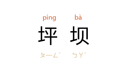 ⒈ 我国西南地区称群山中平坦的地形为「坪坝」。