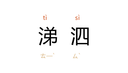 ⒈ 眼泪和鼻涕。三国魏·阮籍〈咏怀诗〉八二首之三二:「齐景升牛山,涕泗纷交流。」唐·杜甫〈登岳阳楼〉诗:「戎马关山北,凭轩涕泗流。」也作「涕洟」。