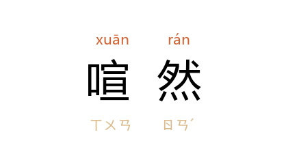 声大而杂貌。 《太平广记》卷三四六引 唐 薛用弱 《集异记·刘惟清》:“俄有輜重皷角,部队纷紜,或歌或语,諠然竞进。”