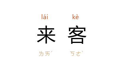 引唐 元结 《小回中》诗:“来客去客船,皆向此中泊。”丁玲 《自杀日记》:“直到下午四点钟了,来客才算肯站起身说走。”