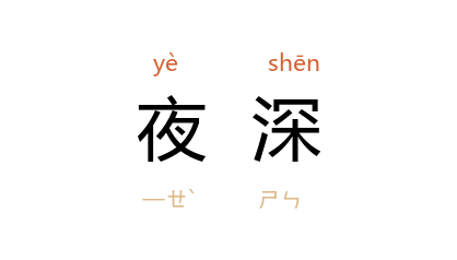引唐·杜甫〈玩月呈汉中王〉诗:「夜深露气清,江月满江城。」《红楼梦·第四五回》:「这会子夜深了,我也要歇著,你且请回去,明儿再来。」