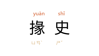 ⒈ 官名。 汉 以后中央及各州县皆置掾史,分曹治事。多由长官自行辟举。 唐 宋 以后,掾史之名渐移于胥吏。