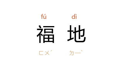 引《西游记·第一回》:「碣上有一行楷书大字,镌著:『花果山福地,水帘洞洞天。』」