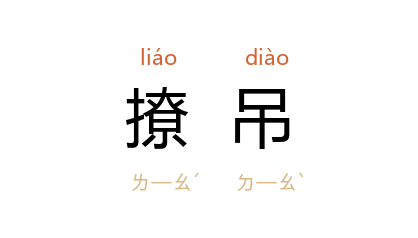 引《醒世姻缘传》第十六回:“那 晁老 一个教书的老岁贡,刚才撩吊了‘诗云子曰’,就要叫他戴上纱帽,穿了圆袖,着了皂鞋,走在堂上。”《醒世姻缘传》第二十回:“这银子就逼小人受了,小人也只撩吊了,要这样贜钱那里去使。”