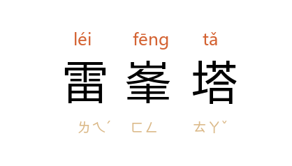 ⒈ 位于浙江省杭州西湖旁的南屏山上。五代时钱俶为妃黄氏所建,今已倾圯。传说中白娘子被金山寺法海和尚镇压在此塔之下。峰阴有夕照寺,故有「雷峰夕照」之称,为西湖十景之一。