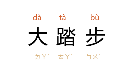 《儒林外史》第三九回:“萧云仙 带着二百人,大踏步杀上山来。”