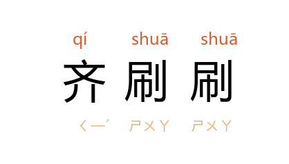 引《新华月报》1981年第9期:“话音刚落,全场齐刷刷地举起一片手。”郭澄清 《大刀记》第十五章:“他们,齐唰唰地摆成双行纵队。”《上海滩》1990年第1期:“珍珠般光洁、晶莹的牙齿,齐刷刷地镶嵌在玫瑰色的双唇之间。”