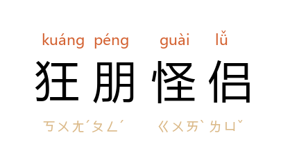 引宋 柳永 《戚氏》词:“帝里风光好,当年少日,暮宴朝欢。况有狂朋怪侣,遇当歌、对酒竞留连。”亦作“狂朋恠友”。 元 杨文奎 《儿女团圆》楔子:“见你每朝逐日,伴着那火狂朋恠友,饮酒作乐。”