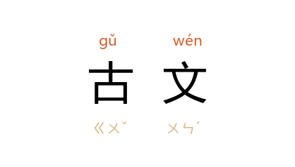⒊ 唐宋文坛上古文运动所主张的先秦两汉的文体。相对于骈文而言。清·方苞〈古文约选·序〉:「自魏、晋以后,藻绘之文兴,至唐韩氏起八代之衰,然后学者以先秦、盛汉辩理论事质而不芜者为古文。」参见「古文运动」条。