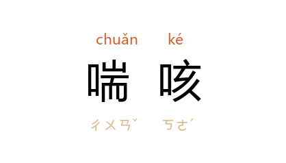 引《素问·藏气法时论》:“肺病者喘咳逆气。”一本作“喘欬”。 《医宗金鉴·正骨心法要旨内治杂证法·喘咳》:“伤损之证而喘咳者,若因出血过多,面黑胸胀,胸膈痛而发喘者,乃气虚血乘于肺也。”王西彦 《一个小人物的愤怒》:“正象比赛一般地发出连串喘咳了。”