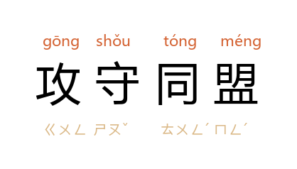 ⒈ 二国以上,缔结为盟,相约军事上一致攻击或防守的行动。即同盟国中有一国与盟外的他国开战时,其他同盟国须共起助之。