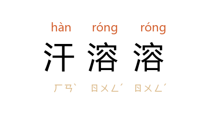 ⒈ 形容汗水很多的样子。元·贯云石〈寿阳曲·担春酒〉曲:「下秋千玉容强似花,汗溶溶透入罗帕。」也作「汗津津」。