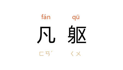 引金 侯善渊 《沁园春》词:“悮参鸞驾凤,霓环珮响,天真謫降,久匿凡躯。”金 王吉昌 《江梅引·神邪归正》词:“蜕凡躯。入虚无。恢廓圆明,性月一轮孤。”金 长筌子 《二郎神》词:“待行满丹成归去日,把四假凡躯脱下。”