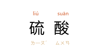⒈ 一种化合物。为无色液体,腐蚀性极强。是现代化学工业上不可缺少的化工原料,可用作脱水剂、催化剂、染料、肥料和化学药品等的原料。