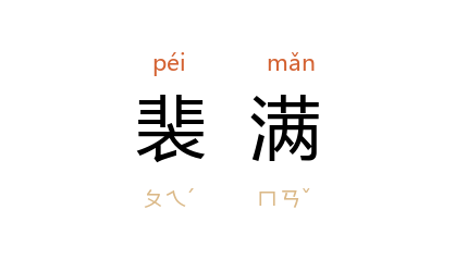 ⒈ 复姓。 金 有 裴满亨。见《金史·金国语解·姓氏》。