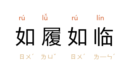 ⒈ 后以“如履如临”形容做事极为小心谨慎。