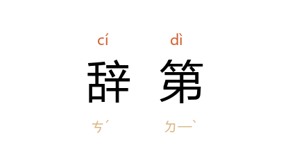 ⒈ 辞去所赐的第宅。典出《汉书·霍去病传》:“上为治第,令视之。对曰:'匈奴不灭,无以家为也。'”后因以“辞第”指为国忘家。