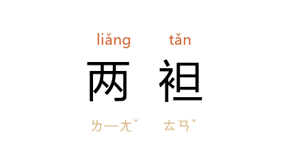 ⒈ 袒露双肩,谓女子兼适两夫家。典出《太平御览》卷三八二引汉应劭《风俗通》:“齐有一女,二家求之。其家语其女曰:'汝欲东家则左袒,欲西家则右袒。'其女两袒,父母问其故,对曰:'愿东家食而西家息。'以东家富而丑,西家贫而美也。”