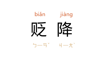 ⒈ 贬官降职。