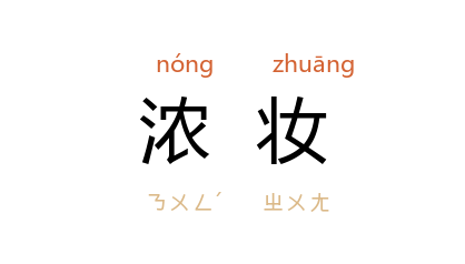 ⒈ 见“浓粧”。亦作“浓妆”。谓妆饰艳丽。